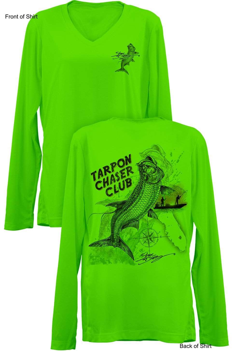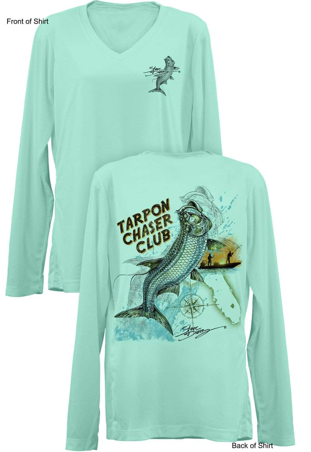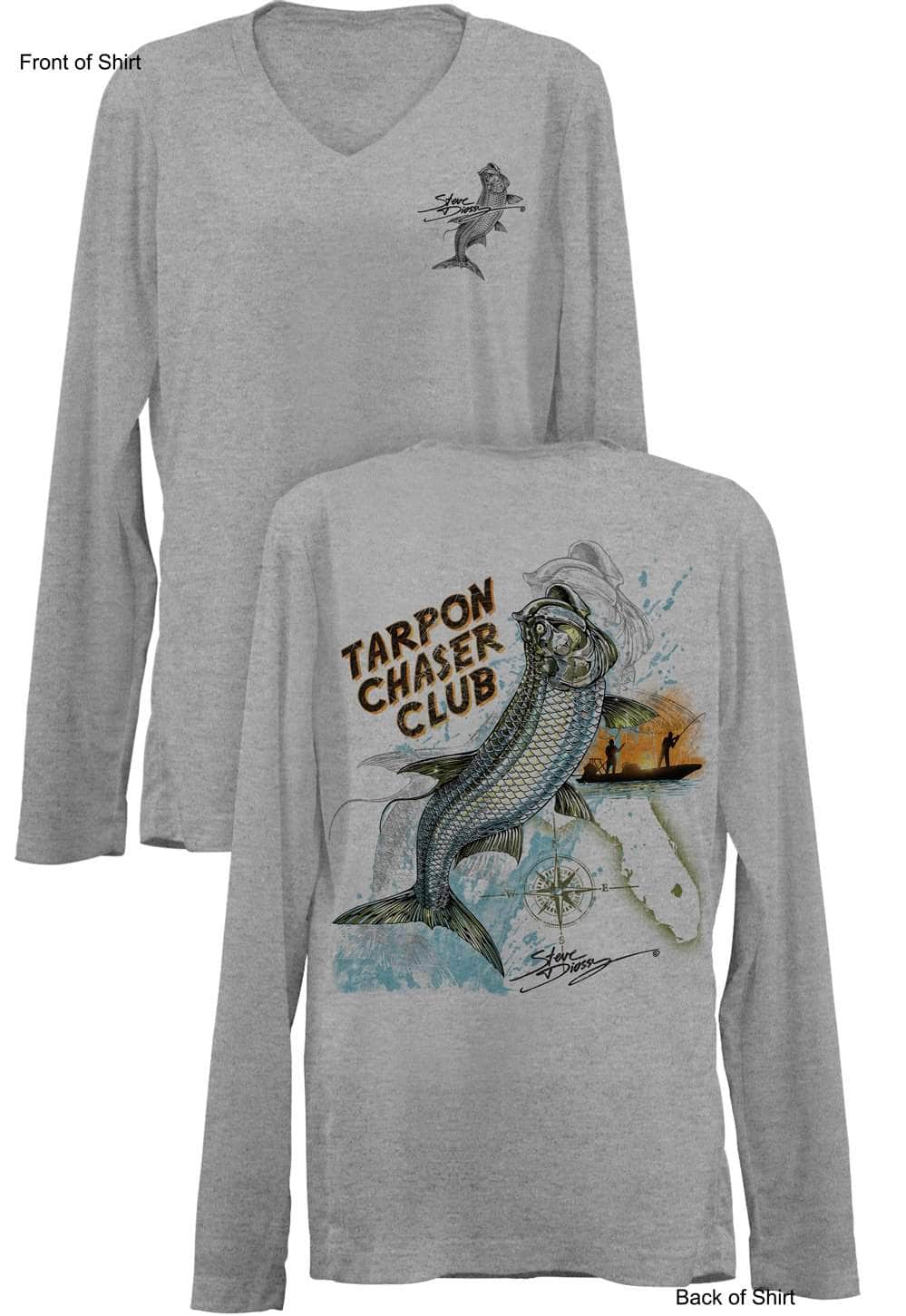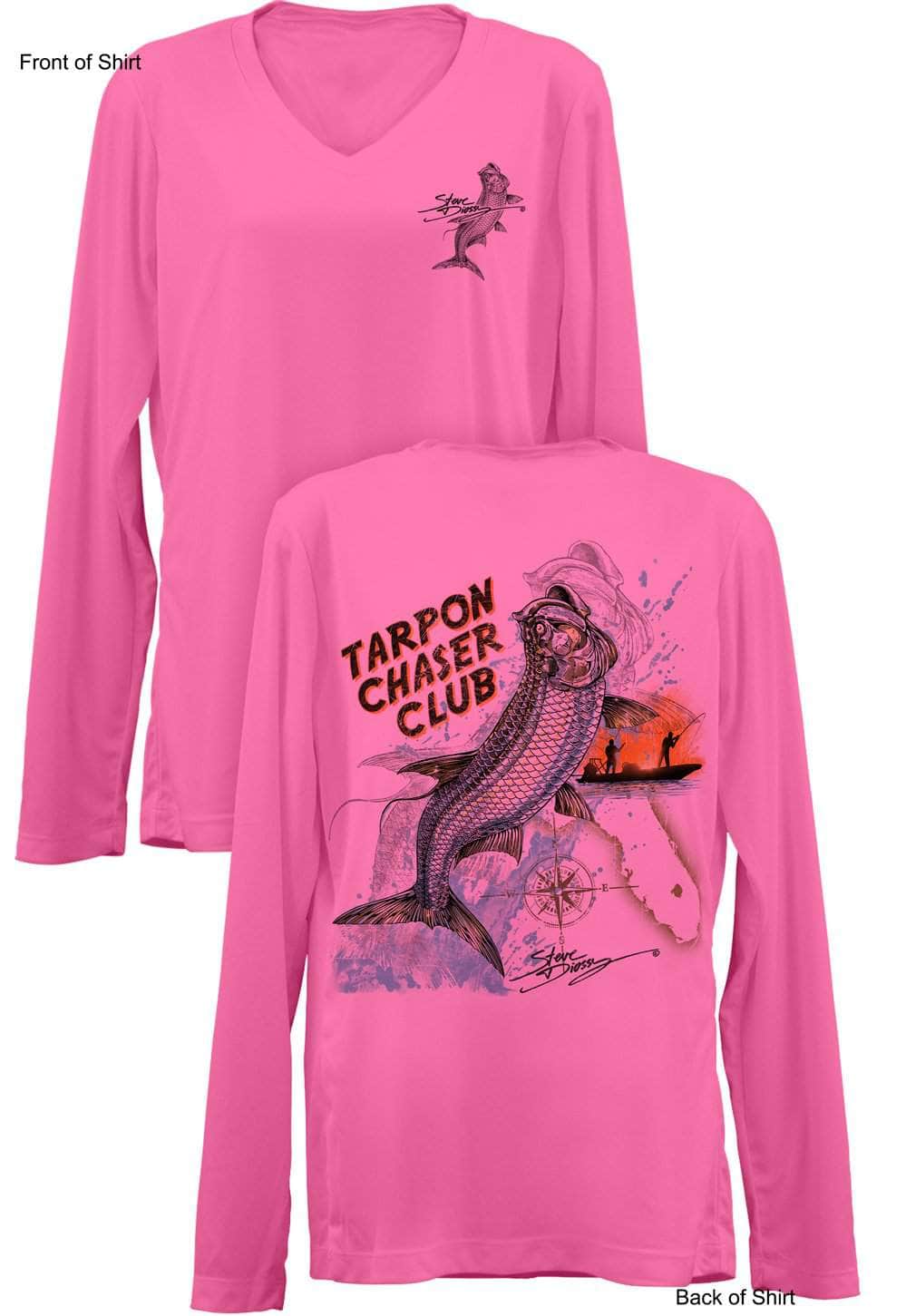 Tarpon Chaser- Ladies Long Sleeve V-Neck-100% Polyester