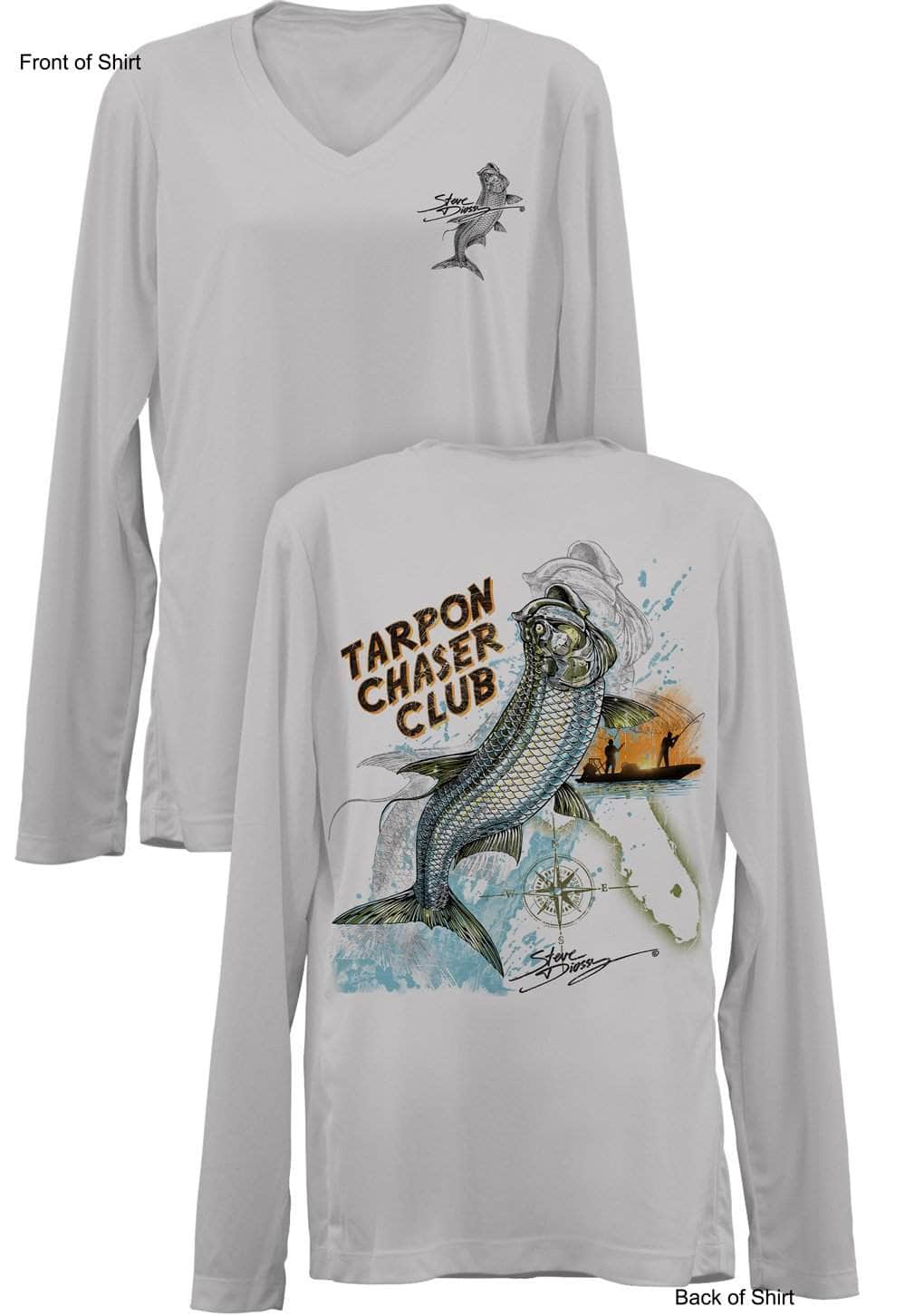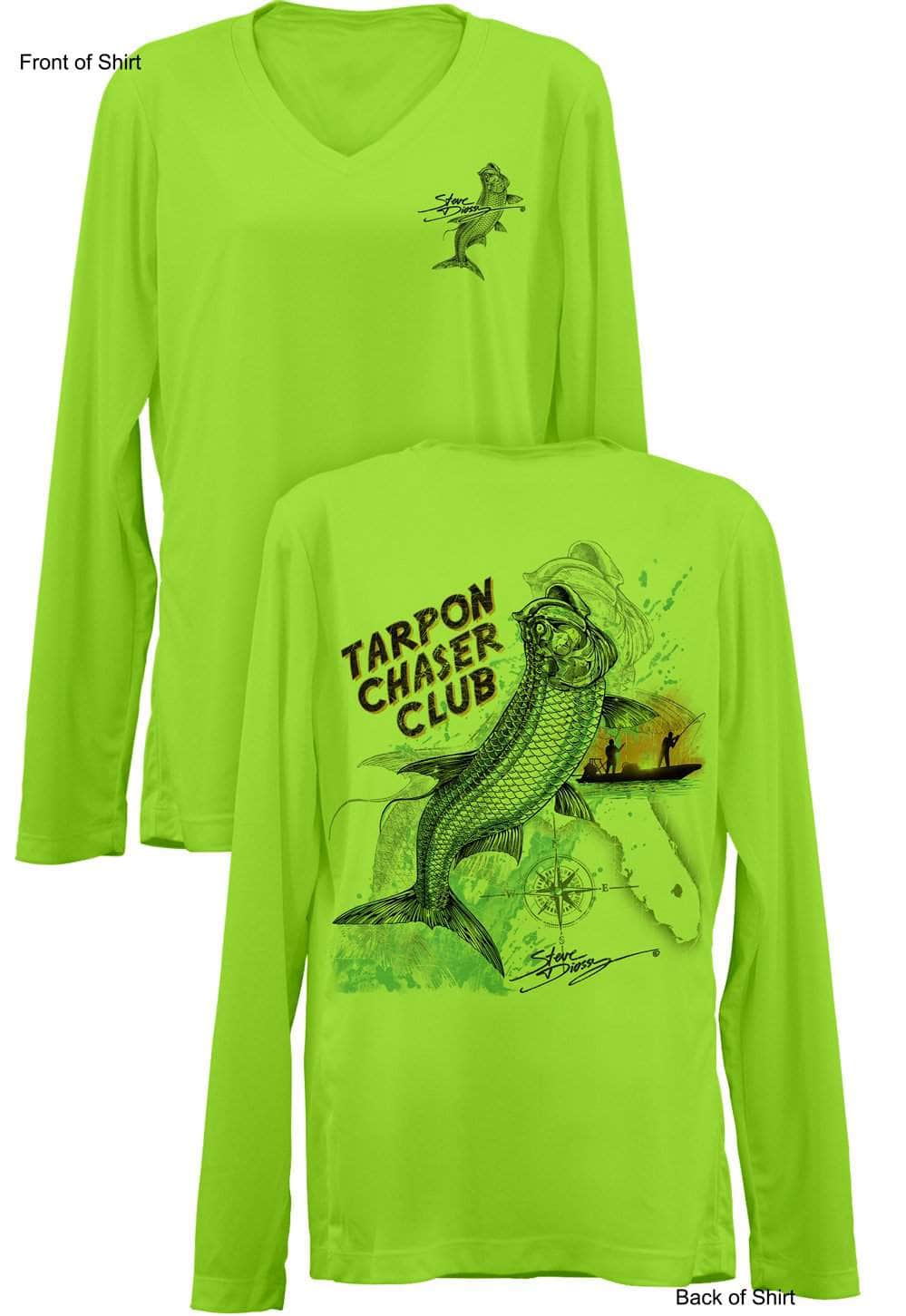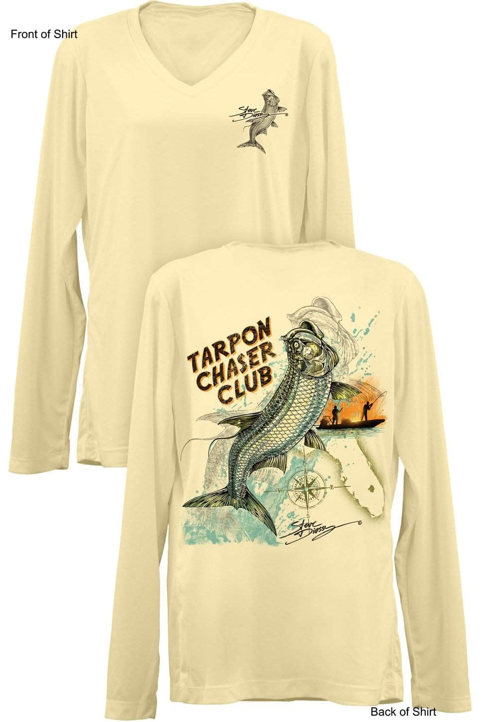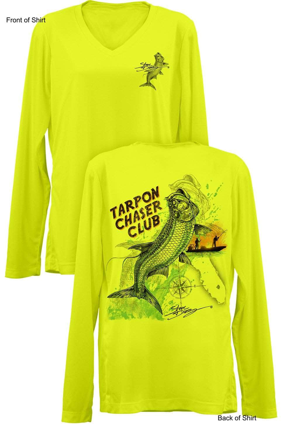 Tarpon Chaser- Ladies Long Sleeve V-Neck-100% Polyester