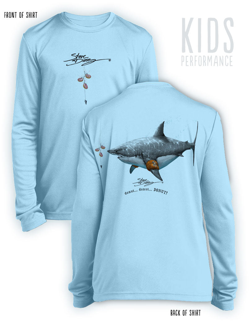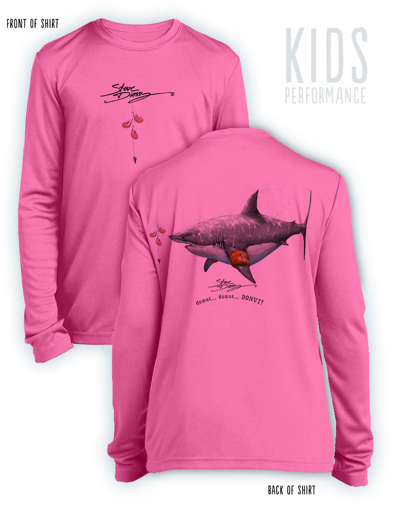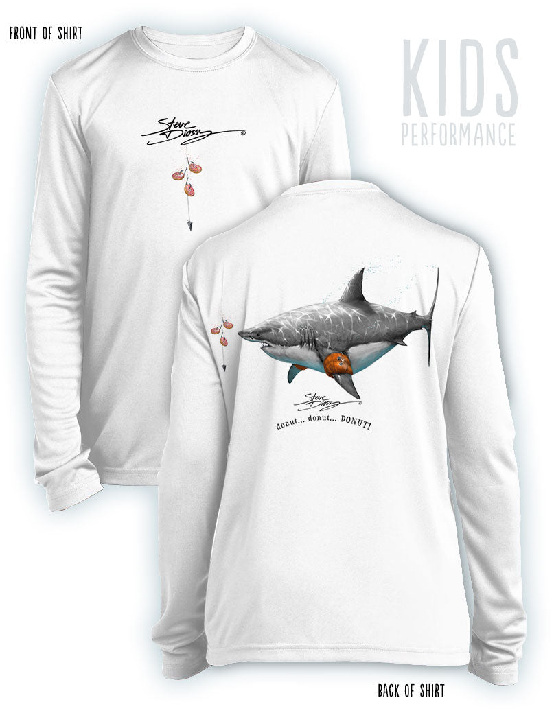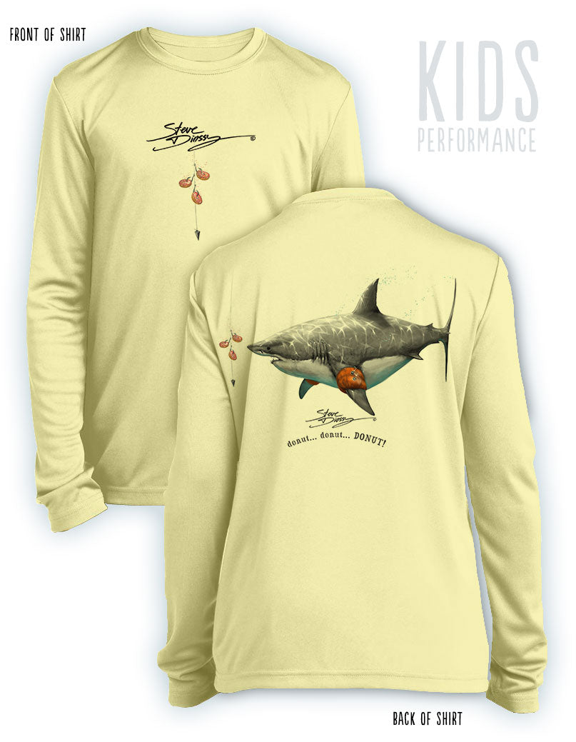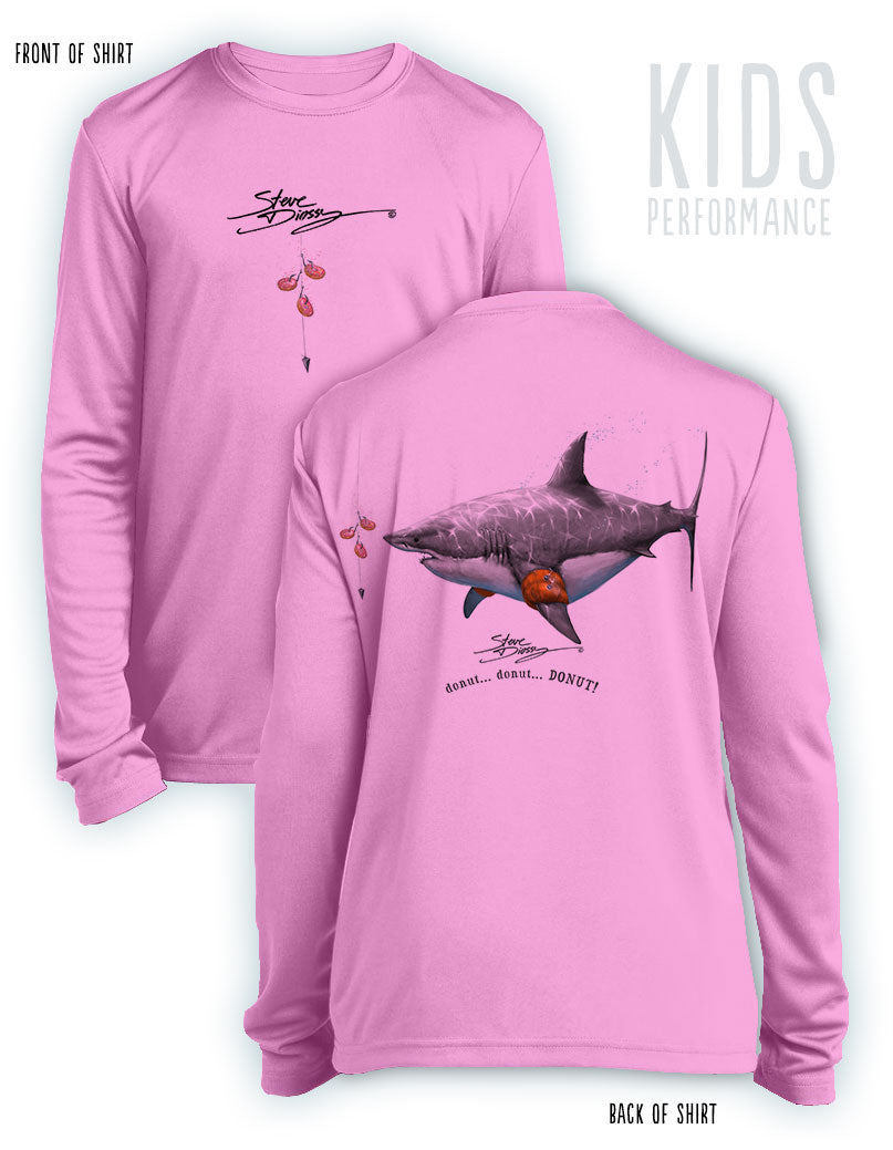 Donut Shark- KIDS Long Sleeve Performance - 100% Polyester