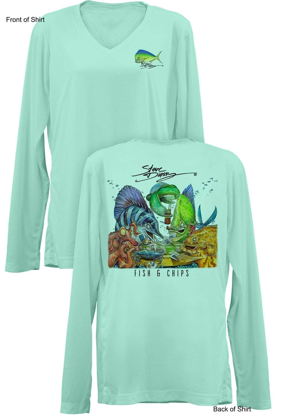 Fish N' Chips- Ladies Long Sleeve V-Neck-100% Polyester