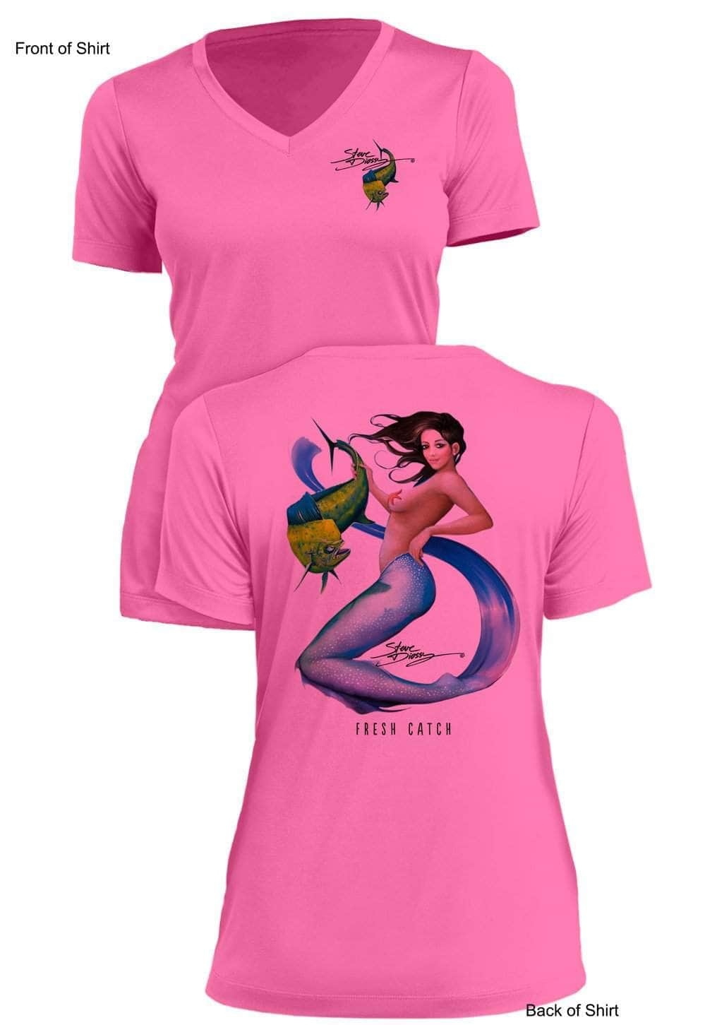 Fresh Catch- Ladies Short Sleeve V-Neck-100% Polyester