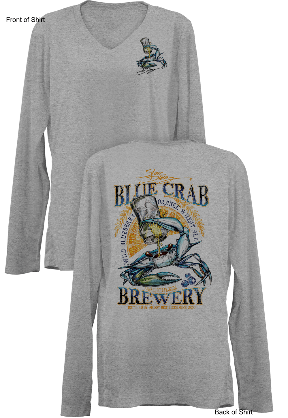 Blue Crab Brew- Ladies Long Sleeve V-Neck-100% Polyester