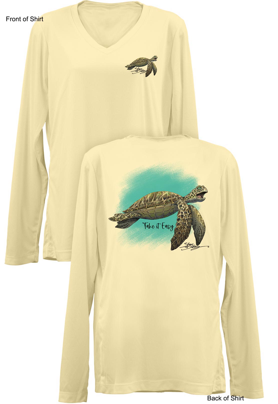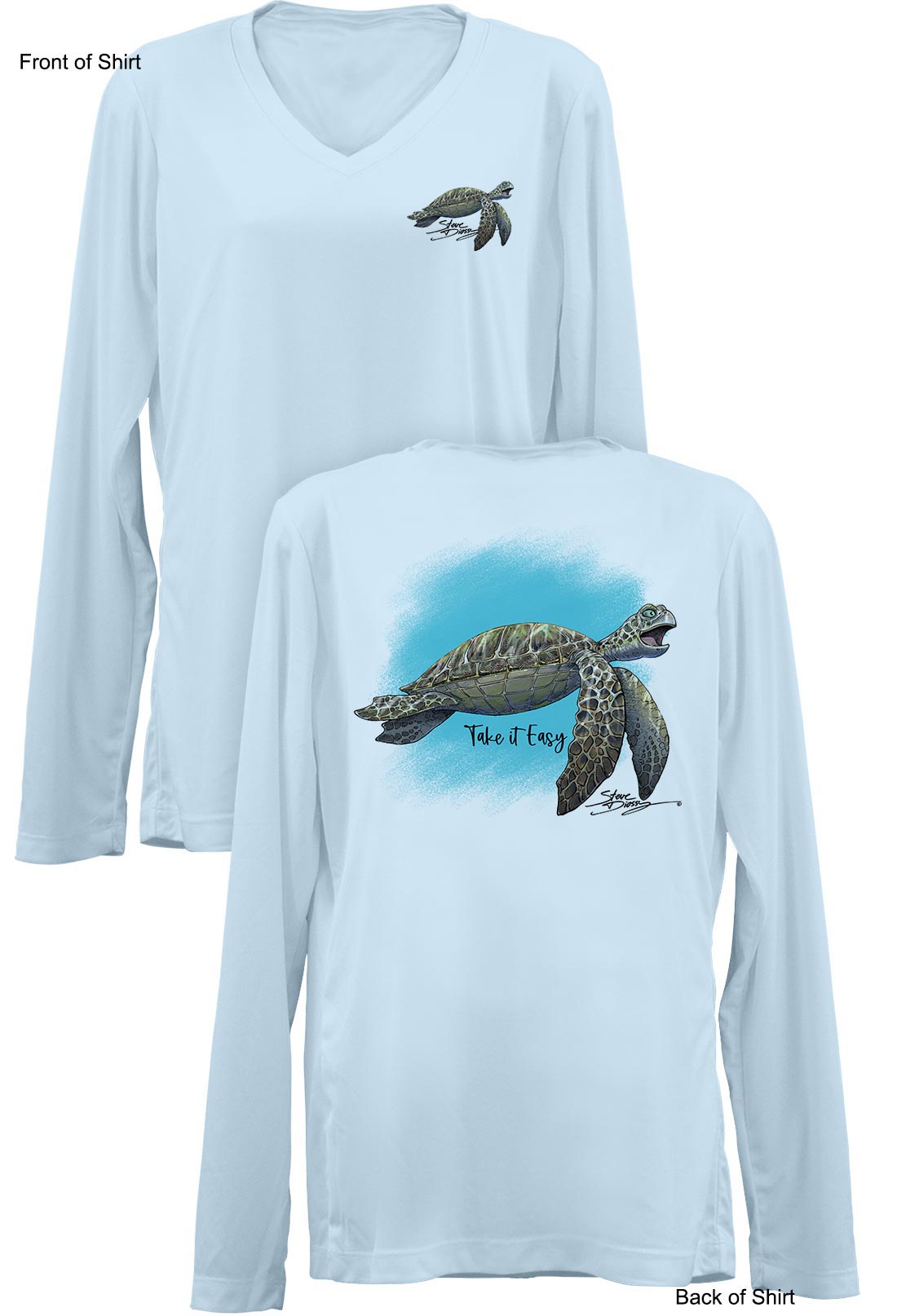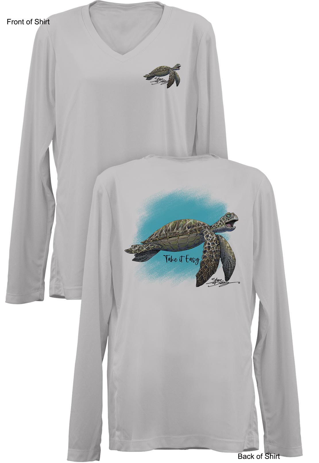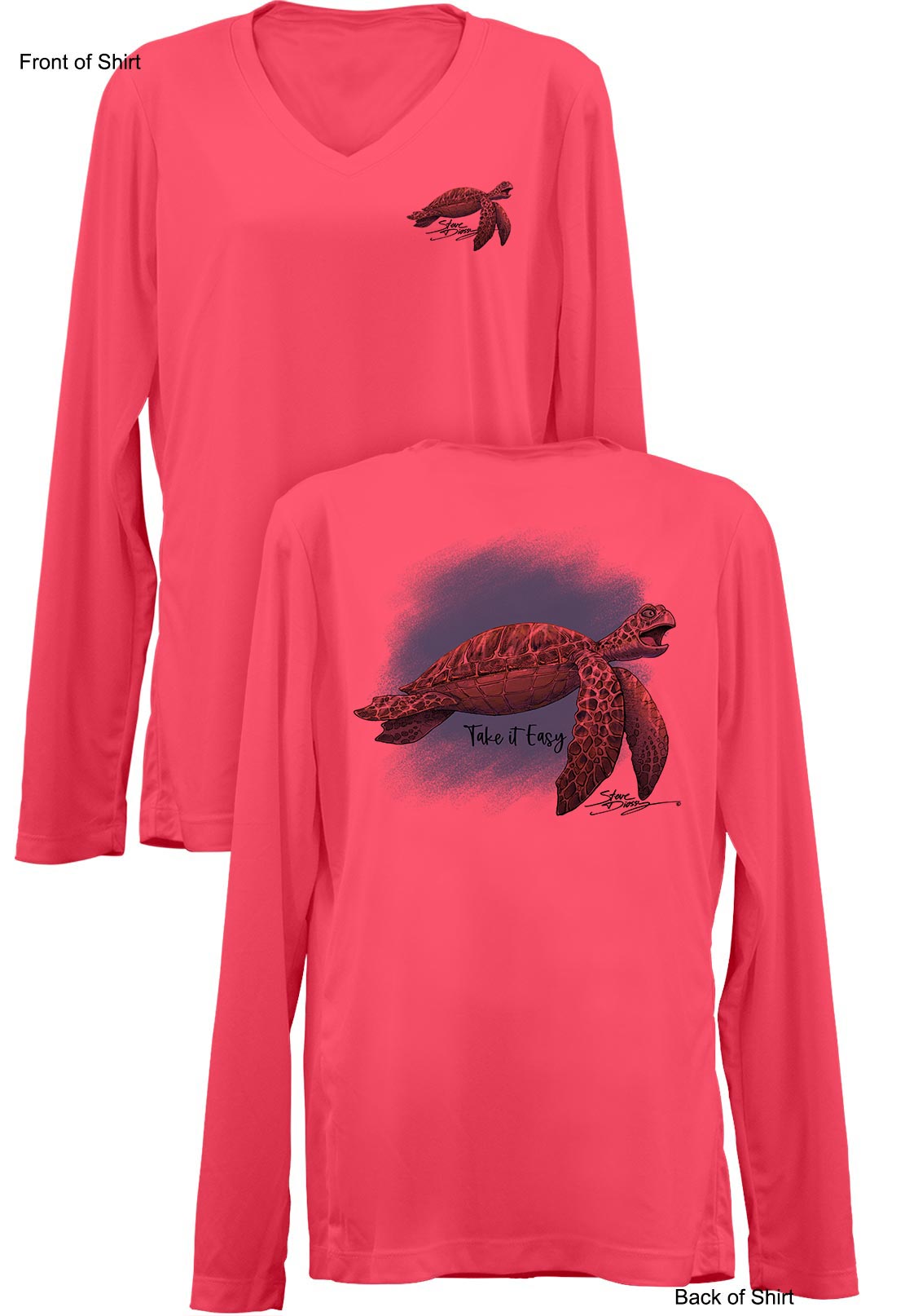 Take It Easy Turtle- Ladies Long Sleeve V-Neck-100% Polyester