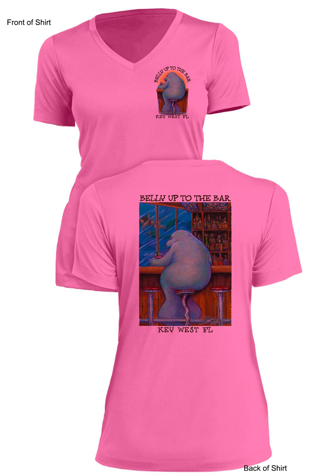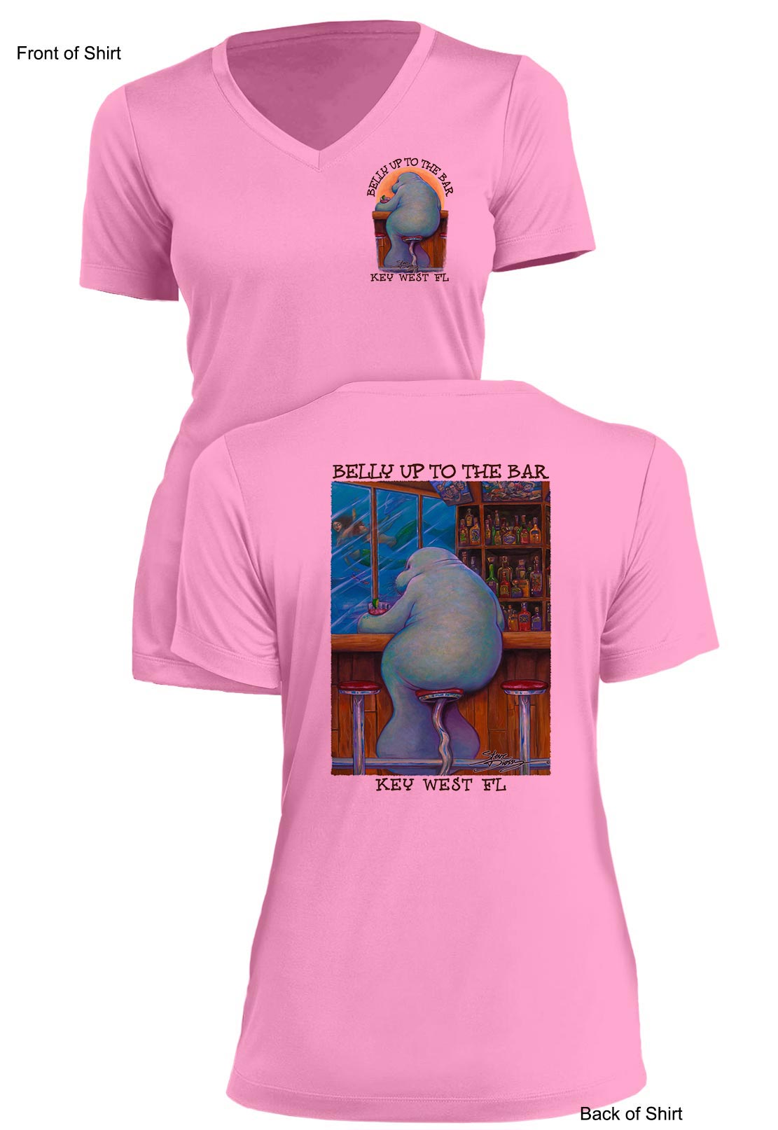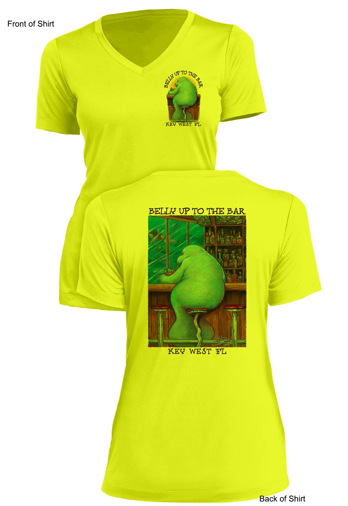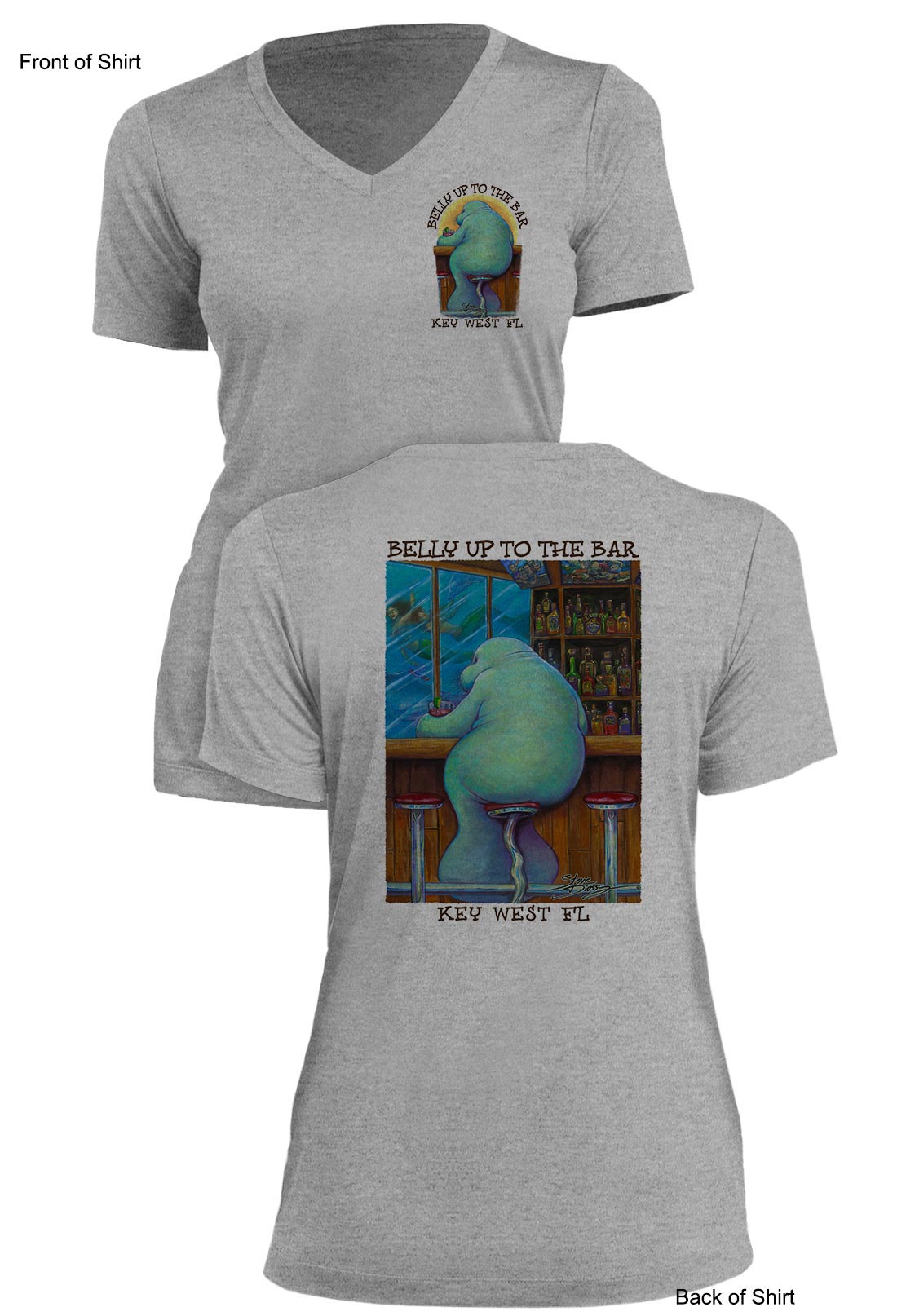 Shirt Reads: Belly up to the bar, Key West, FL Superwick- Wicks 3 times fasterSun Protection UPF 50+Recycled microfiber polyester/spandexEco-Friendly yarn made from recycled bottlesAnti-microbial finishWrinkle...