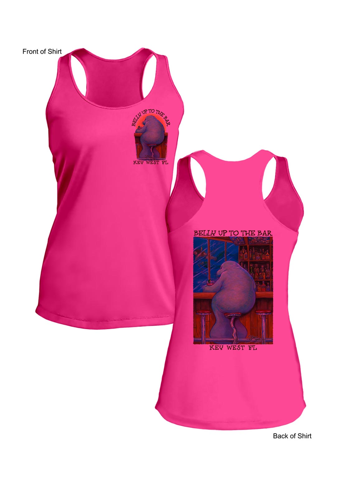 • Belly Up to the Bar- Lonely Manatee - Ladies Racerback Tank-100% Polyester