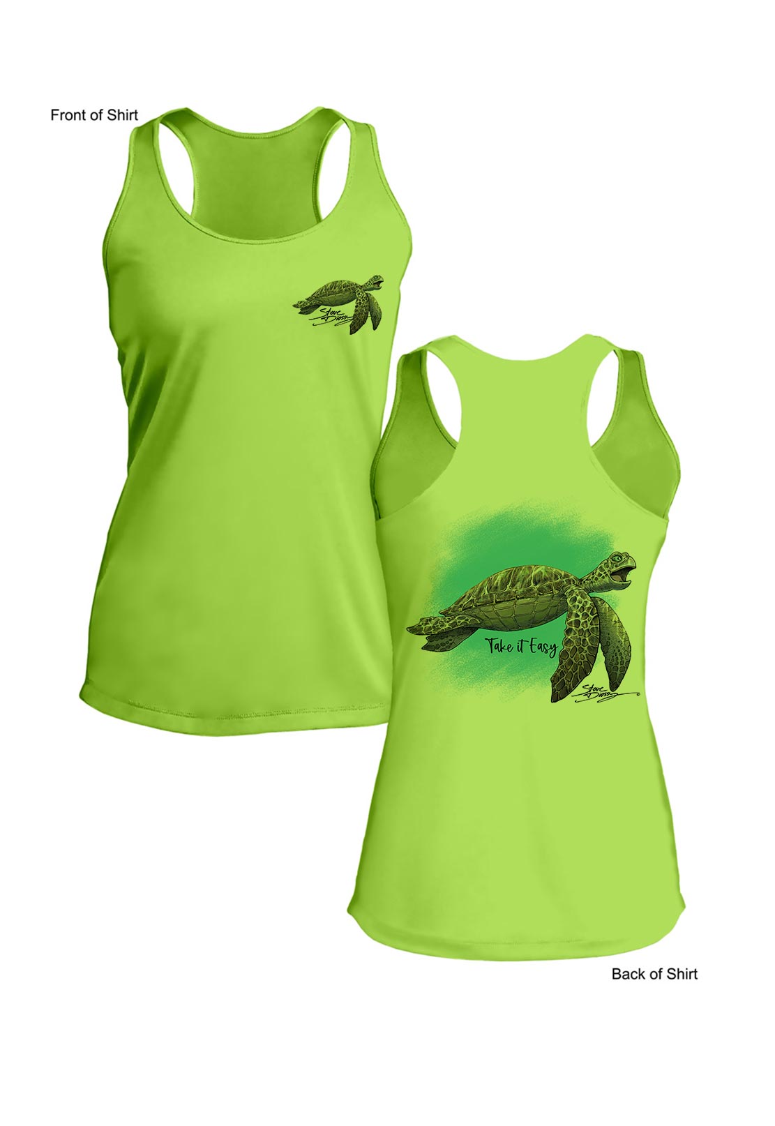 Take It Easy Turtle- Ladies Racerback Tank-100% Polyester