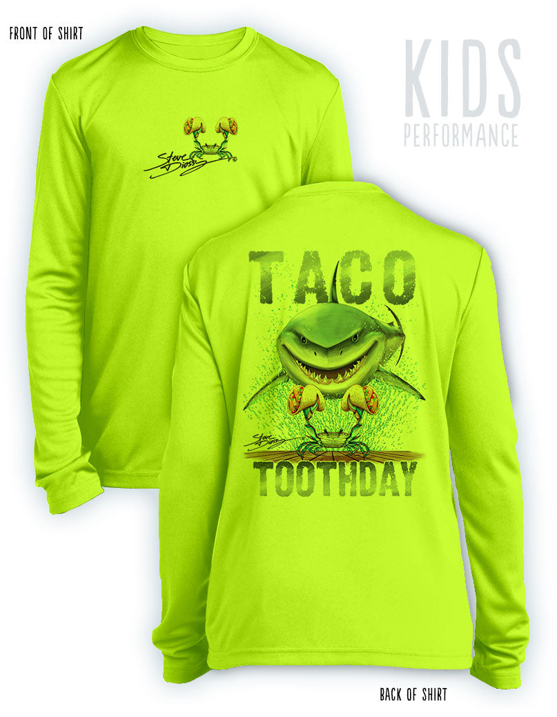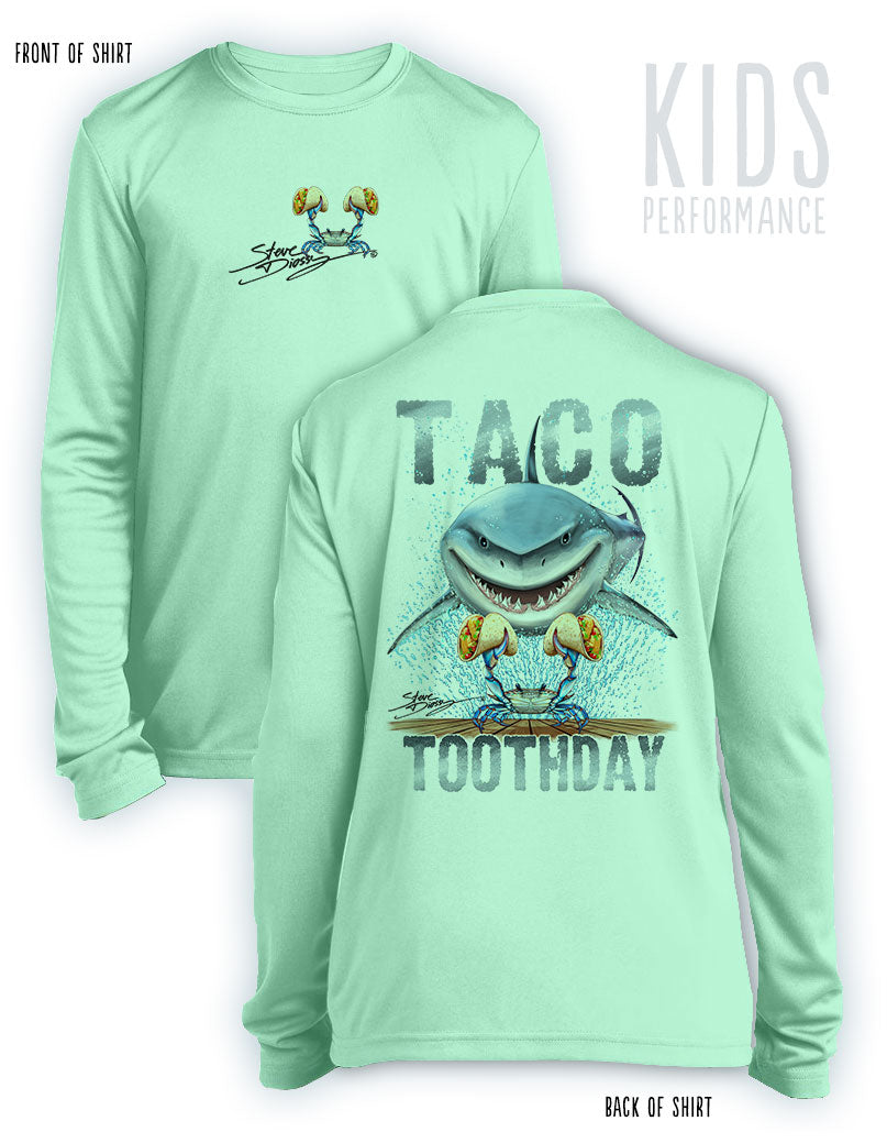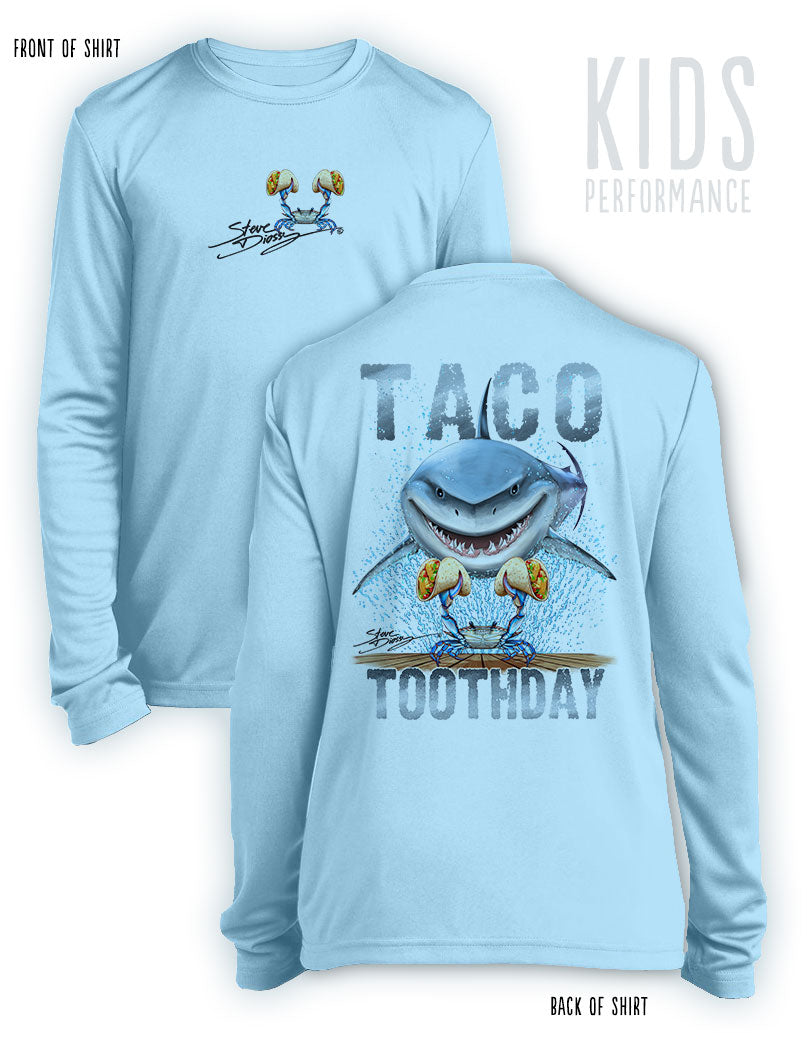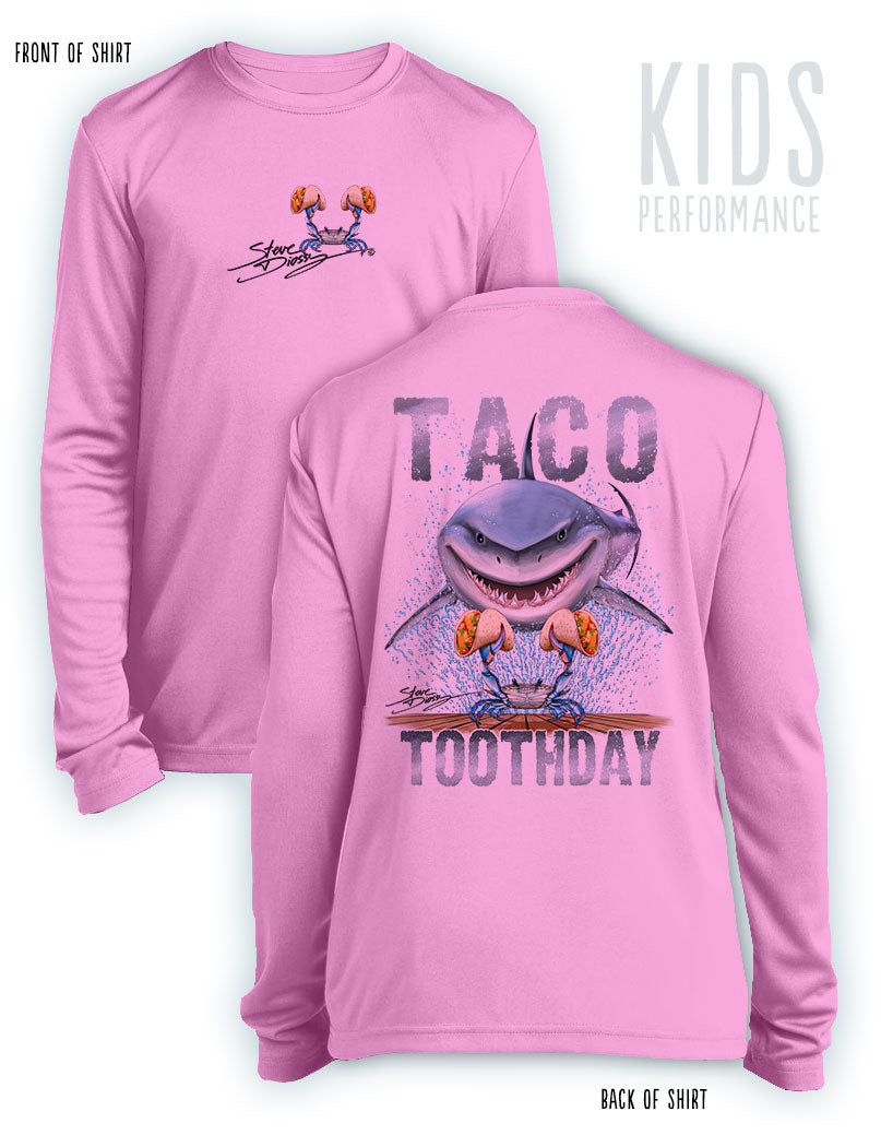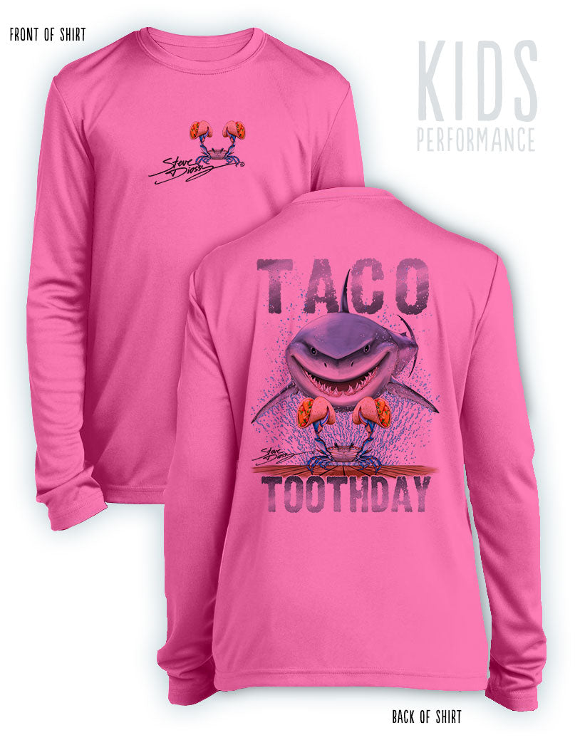 Taco Toothday- KIDS Long Sleeve Performance Shirt- 100% Polyester